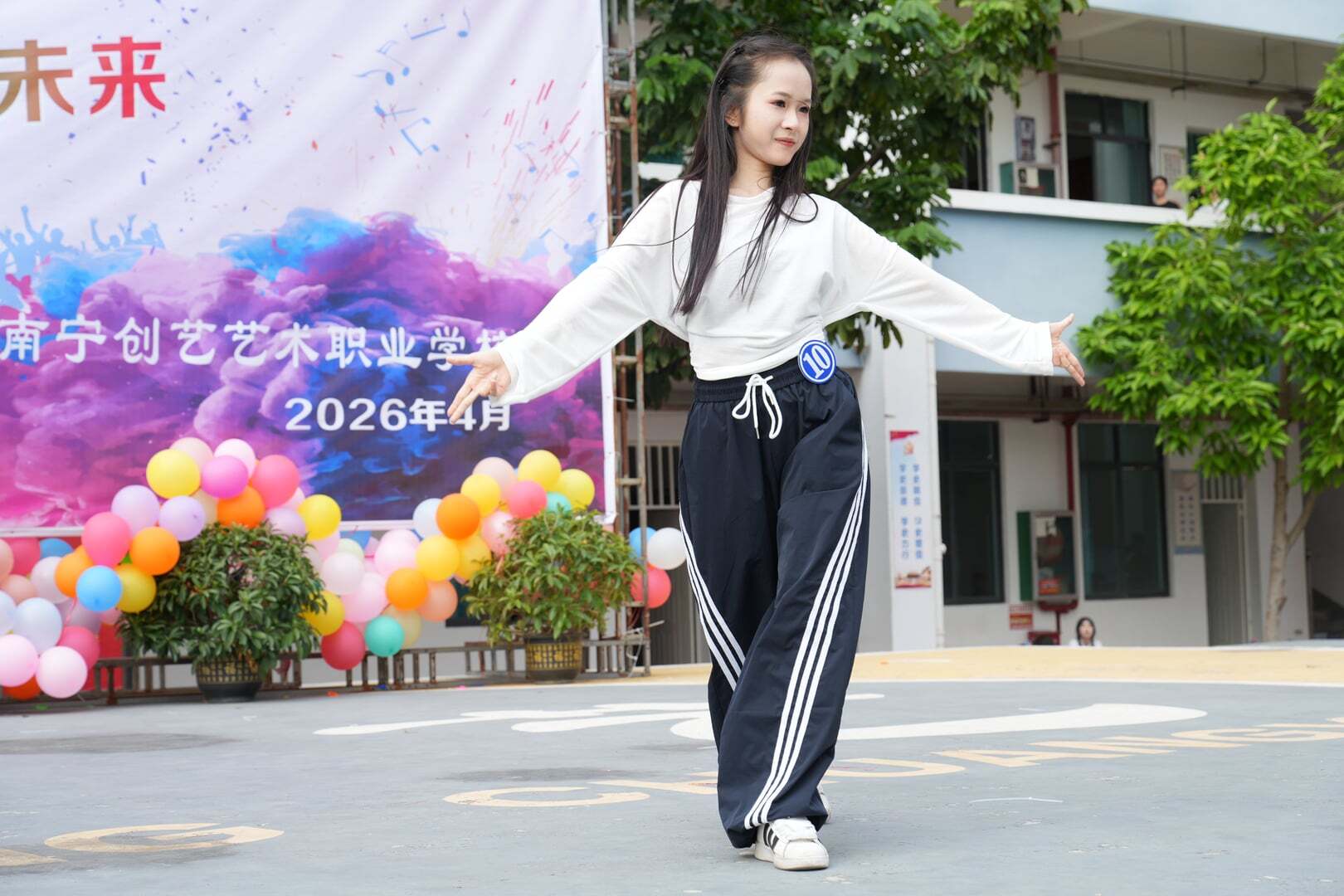 舞蹈比赛精彩纷呈,民族舞、现代舞、街舞轮番上演。同学们动作整齐、表情投入,用身体语言讲述着一个个动人的故事。跳跃的音符与灵动的舞步交相辉映,展现了学生们蓬勃的朝气与创造力。